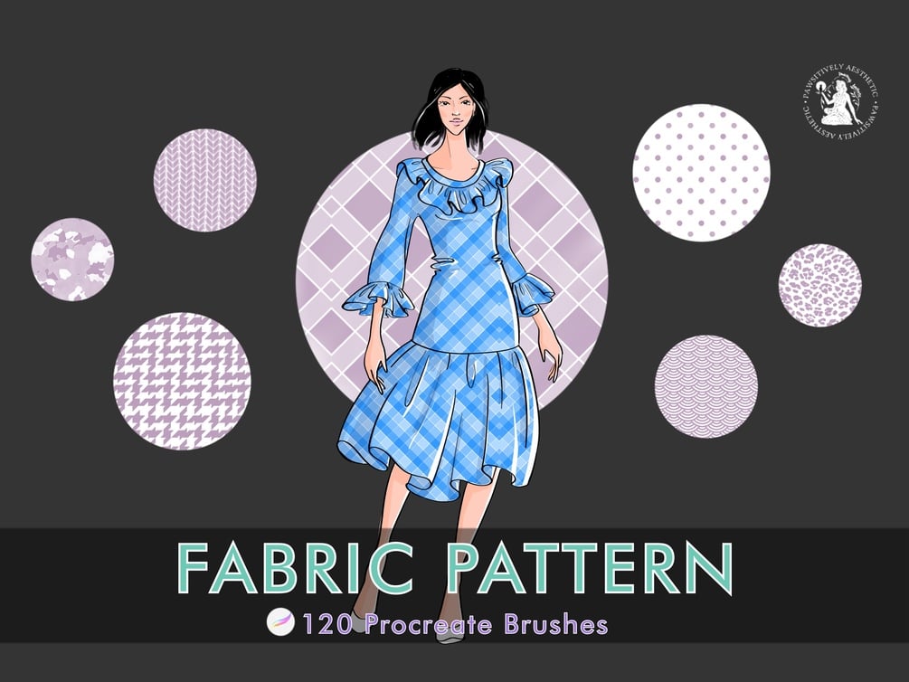 120 Procreate Pattern Brushes, Fabric Brushset, Japanese, Plaid, Gingham